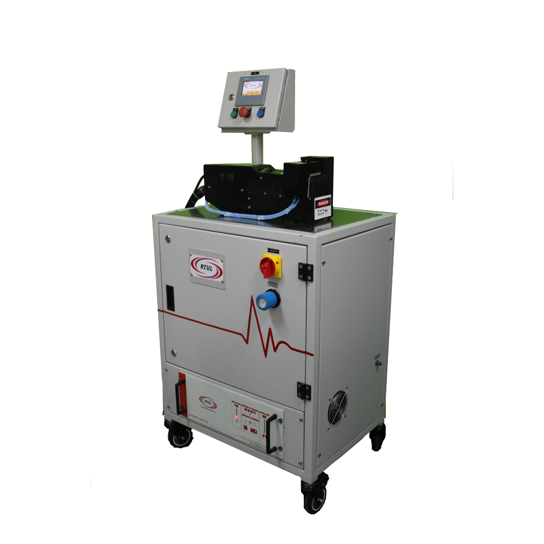 The Task To design an ultrasonic welding machine which can simultaneously cut and seal tarpaulin eyelet. Technical fabrics are used in all walks of life and the challenge of simplifying eyeleting operations is successfully accomplished by using ultrasonic technology. The Solution In this case, the challenge was successfully completed by designing an ultrasonic welding machine consisting of USP 3000 press, IWC-5 , cutting controller (the horn comes in contact with t...